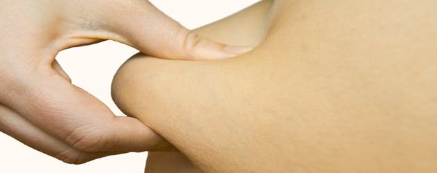 Kvinne undersøker seg selv for symptomer på brystkreft
