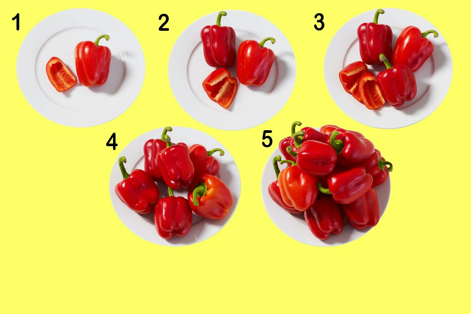 Punainen paprika 50 kcal = 167 g 100 kcal = 333 g 150 kcal = 500 g 250 kcal = 833 g 500 kcal = 1,67 kg