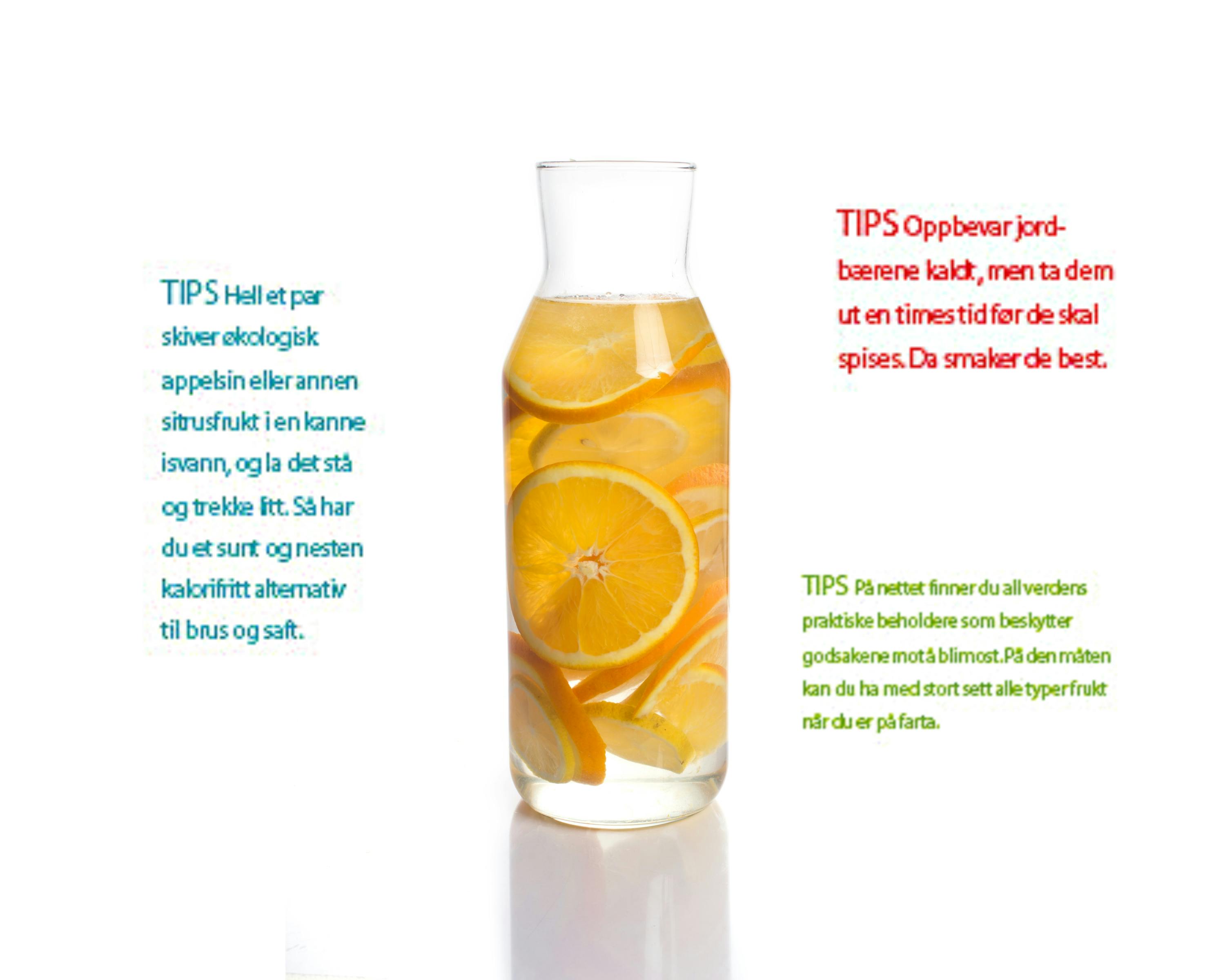 På de følgende sidene blir du inspirert til å variere inntaket mest mulig, for frukt er langt fra bare frukt. De mange ulike sortene har forskjellige egenskaper, som gjør at de egner seg til forskjellige formål. Et eple er for eksempel et smart mellommåltid når du er på farta, banan er flott etter trening, og jordbær fungerer supert mot søtsug. Og hvis du går rundt og først og fremst forbinder frukt i matlagingen med boksananas på skinkepizza, så sjekk alle de fristende oppskriftene på side 24. Der tryller vi med eksotiske frukter i alt fra hovedretter til drikker og desserter.