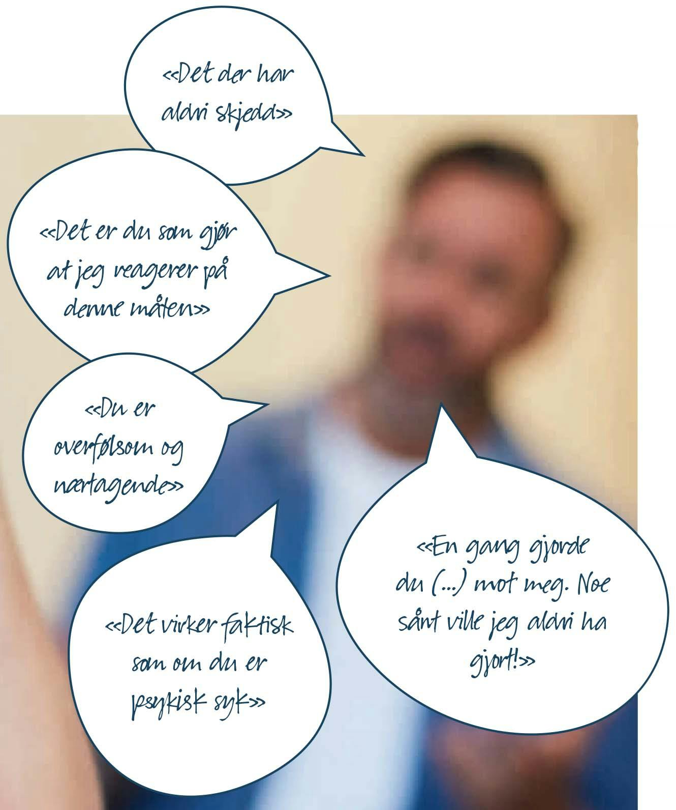 Du får også en rekke eksempler på hva en person som utsetter deg for gaslighting, kan finne på å si. Vi gir også råd for deg som blir utsatt for gaslighting.