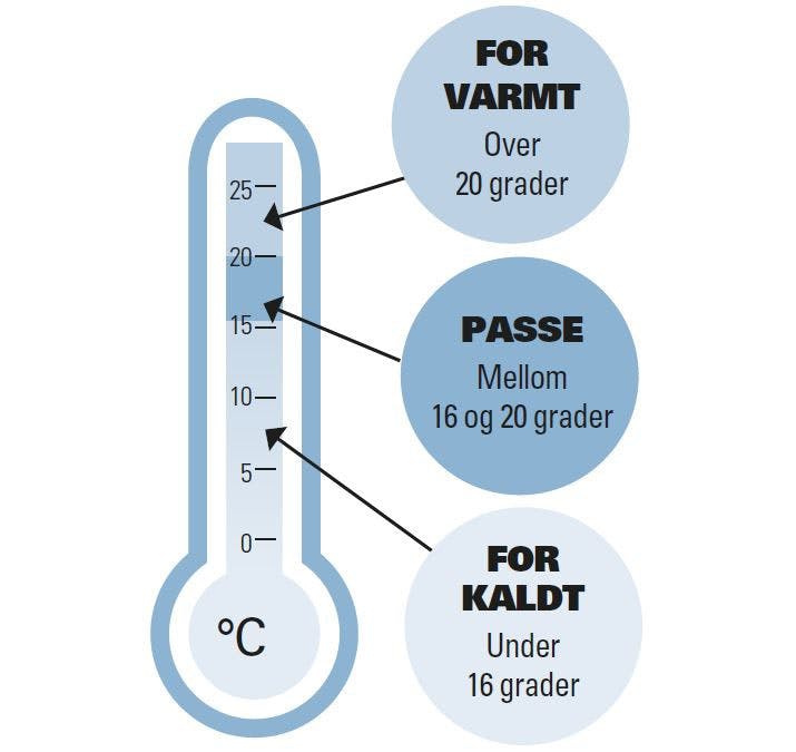 For at du skal sovne og forbli sovende, må kroppstemperaturen synke. Er det glovarmt på soverommet, må kroppen jobbe på høygir for å kvitte seg med overskuddsvarmen. Det er imidlertid vanskelig å si hva som er den optimale temperaturen, og det kan være stor forskjell fra person til person. Derfor anbefaler ekspertene at termometeret viser mellom 16 og 20 grader.