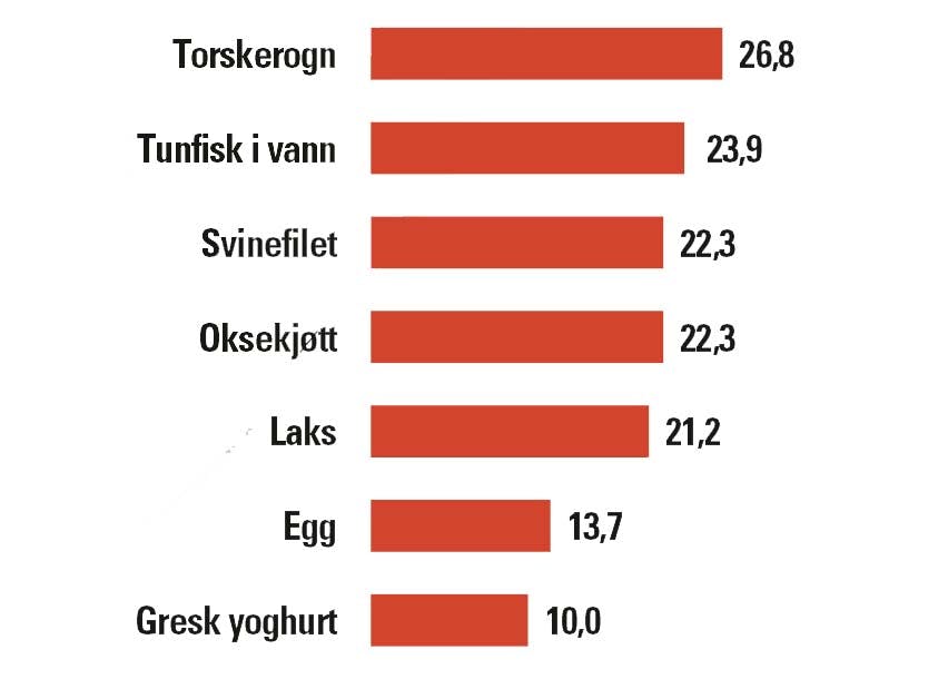 Den beste proteinkvaliteten får du i animalske produkter som kjøtt, fisk, fjærkre, egg og meieriprodukter som for eksempel skyr og gresk yoghurt.