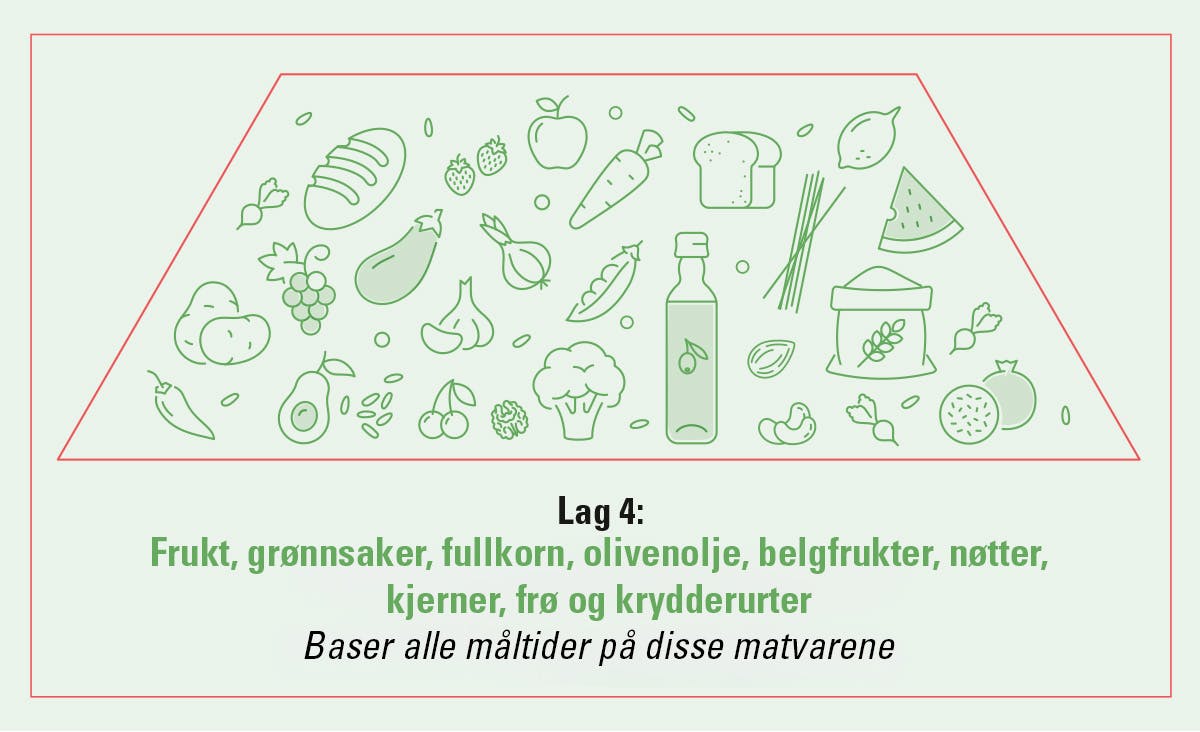 Pyramiden gir deg en rask oversikt over hvilke matvarer du bør spise mest av – og minst av.