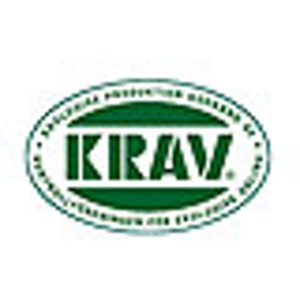 "Krav" er det svenske økologimerket og styres av en organisasjon. Merkningen krever at varen som et minimum overholder EUs regler om økologisk landbruk.