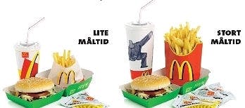 Pass på når du skal velge fra hurtigmatmenyen. Du risikerer nemlig å få i deg langt flere kalorier enn du tror hvis du tar den største porsjonen.