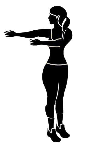 Legg venstre arm over brystet og før høyre arm vannrett ut til siden og bakover. Se etter armen og roter hofteleddet. Før armen tilbake. 10 repetisjoner med hver arm.