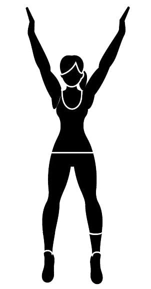 Sitt på huk med den ene foten litt foran den andre og legg vekta på den forreste hælen. Hopp opp med armene over hodet. Sett av med først høyre og så med venstre bein. 10 repetisjoner totalt.