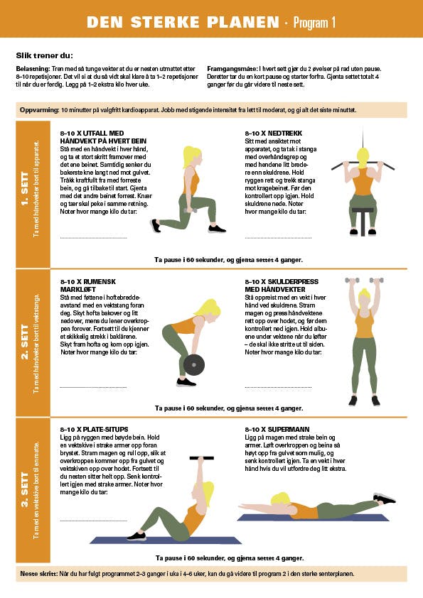 Når du har fulgt programmet 2–3 ganger i uka i 4–6 uker, kan du gå videre til program 2 i den sterke senterplanen.