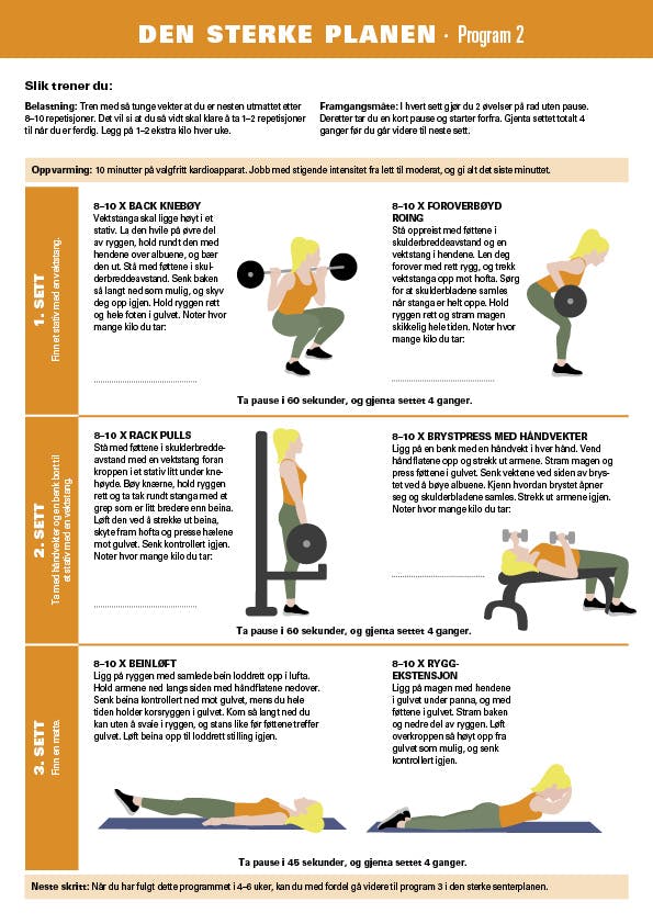 Når du har fulgt dette programmet i 4–6 uker, kan du med fordel gå videre til program 3 i den sterke senterplanen.