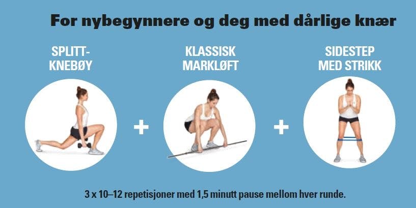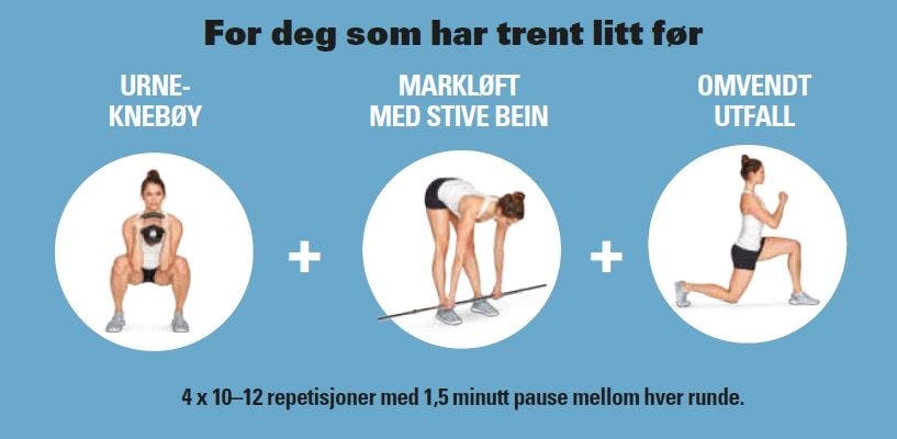 Drømmer du om flotte, sterke bein? Her er et enkelt, men effektivt treningsprogram med kongeøvelsene markløft, knebøy og utfall.