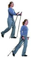 Beveg stavene i den rytmen armene arbeider i når du går vanlig, det vil si vekselvis høyre og venstre stav fremme, og samtidig fører du motsatt ben frem. Sett ned staven ved hælen til den fremre foten. Bruk stavene til å trekke kroppen fremover og senere i bevegelsen til å skyve kroppen frem. Senk skuldrene og se fremover.