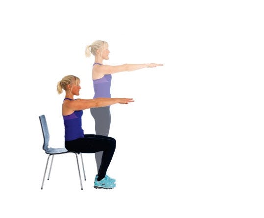 Gjør det til en vane å ta såkalt box squat når du setter deg på kontorstolen - og få fast rumpe og lår.