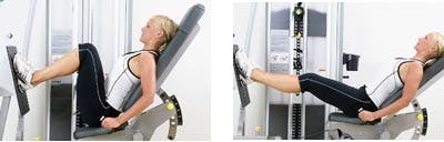 Kjør setet så langt frem du klarer. Skyv deg bakover i en langsom, glidende bevegelse – unngå å låse beina når de er helt rette. Det tar nemlig presset fra lårmusklene, slik at de ikke får riktig så bra trening, og det belaster knærne for mye – de er ikke bygd for denne typen belastning. Bøy deretter beina langsomt igjen til du er tilbake i startposisjonen.