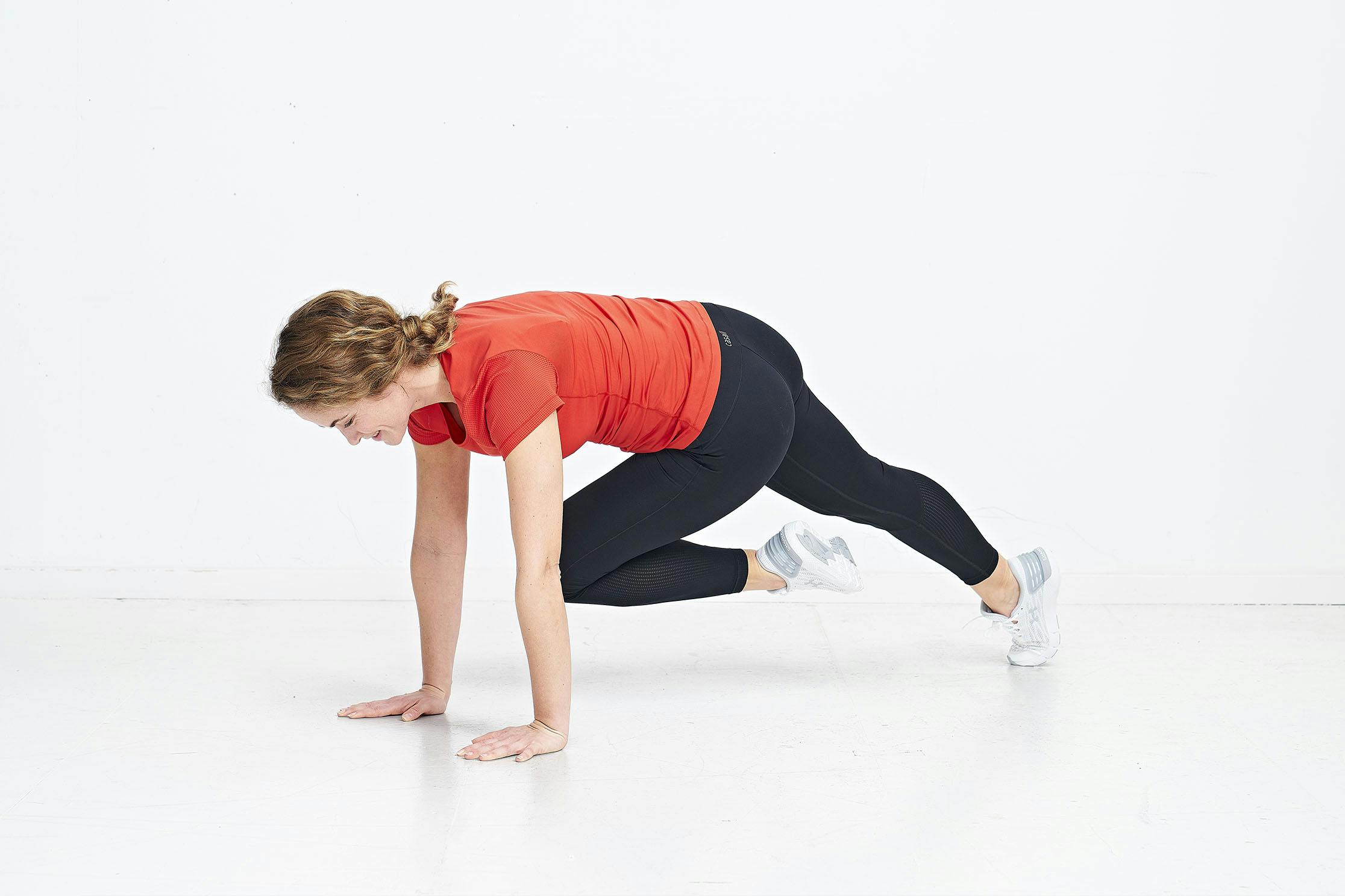 Du bruker bare kroppsvekten, men får likevel beinhard trening av armer og skuldrer i denne effektive armhevingvarianten. Hvis du også legger inn fjellklatrer i øvelsen, får du styrket hele kjernemuskulaturen samtidig. Også lår og legger blir aktivert i den løpende bevegelsen.