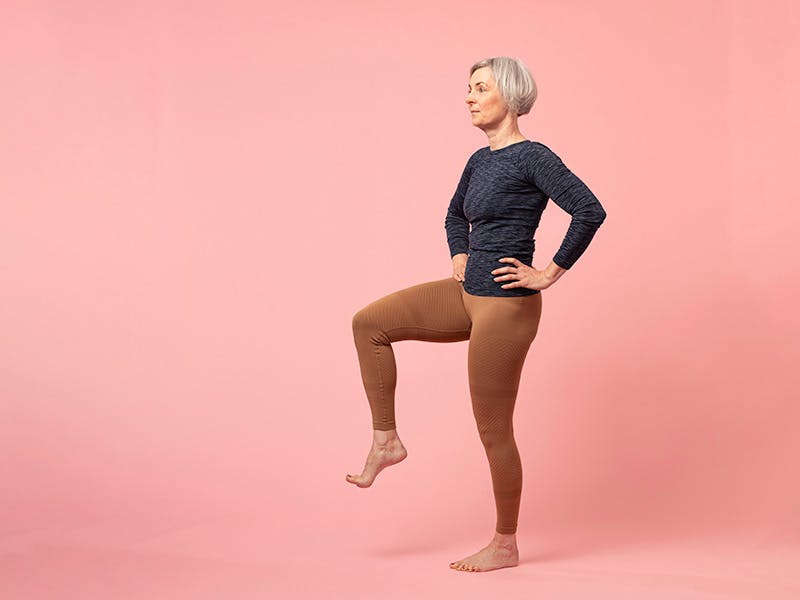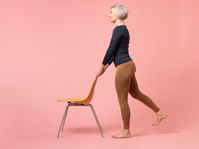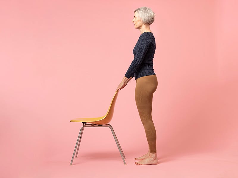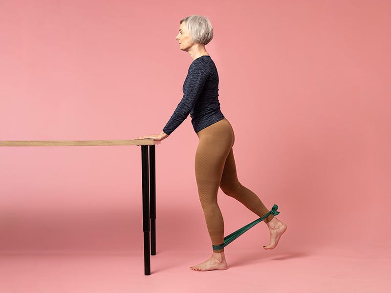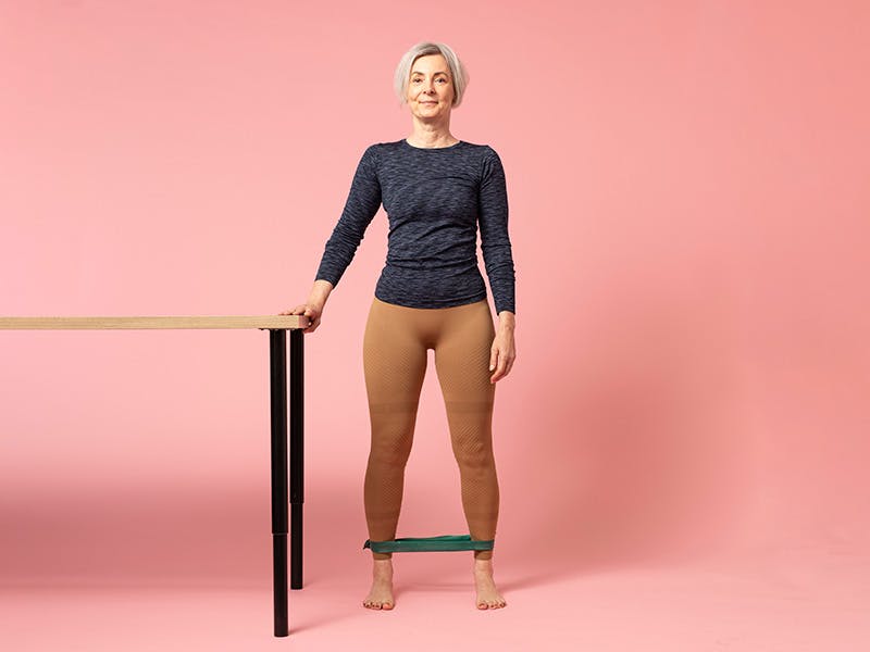 Vi anbefaler at du gjør alle stående øvelser ved siden av et bord eller en vegg, slik at du alltid har noe å støtte deg til hvis du mister balansen.