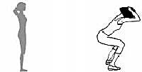 Stå med parallelle føtter i hoftebreddes avstand. Legg hendene bak nakken. Bøy ned i bena.