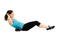 Legg korsryggen mot en sammenrullet matte. Spenn magen, og plasser hendene bak ørene.