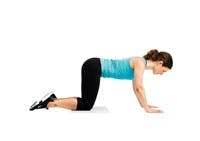 Bøy armene, samtidig som du skyver knærne bakover, slik at hoftene strekkes ut. Strekk armene, og trekk knærne inn til utgangsstilling igjen.