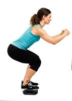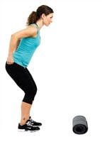 Bøy lett i knærne, ta sats og hopp opp på matten, og land med en dyp knebøy. Strekk bena igjen så fort du kan, og hold balansen mens du teller til 5. Gå ned fra matten, og start forfra på øvelsen.