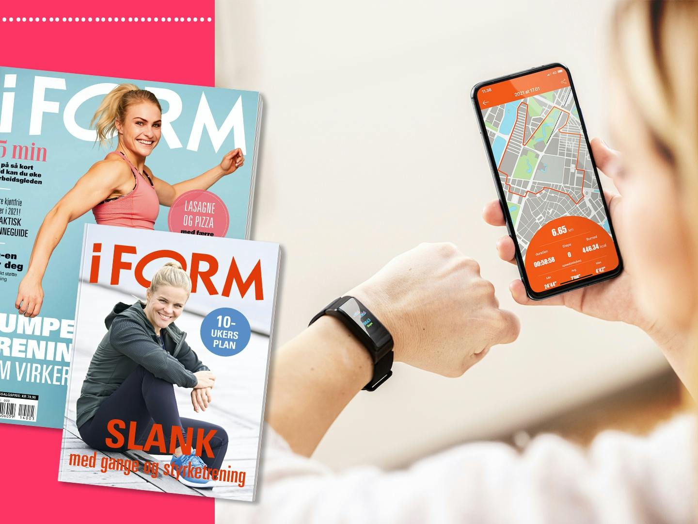Akkurat nå får du aktivitetsklokken Active Fit Tracker med innebygd skritteller, kaloriteller, pulsmåler og rutefunksjon med superrabatt, sammen med ditt nye I FORM-abonnement.