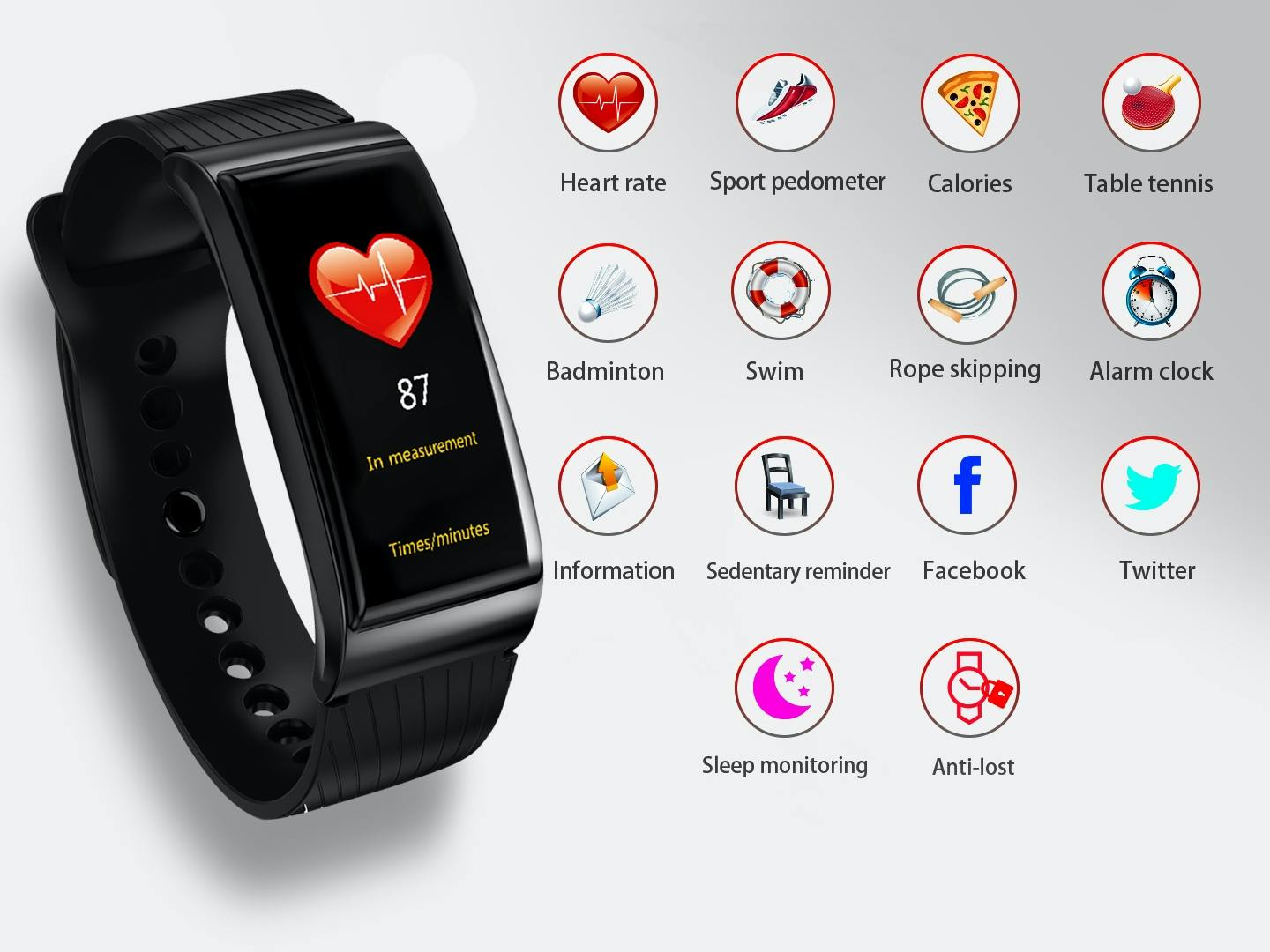 Aktivitetsklokke – Active Fit Tracker er en aktivitetsklokke i praktisk og stilrent design, behagelig å ha på og med touch-skjerm. Den har mange smarte og motiverende funksjoner (her ser du dem). Klokkeskjermen lar deg blant annet sjekke aktuell puls og dagens skritt. Måleren fungerer samtidig som vanlig klokke med tid og alarm - og som en smartklokke som vibrerer diskret når du får en oppringning eller en beskjed.